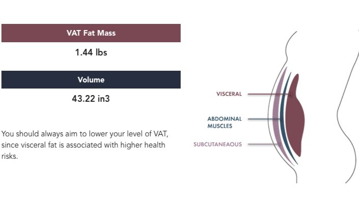 VAT is associated with dangerous hormone activity that increases the risk of diseases related to metabolism, such as diabetes and heart disease. Too much visceral fat also raises the risk for gallbladder disease and breast cancer in women and may lead to worse outcomes for individuals who have cancer. Understanding your body’s visceral fat content can help you map a plan to reduce disease risk.